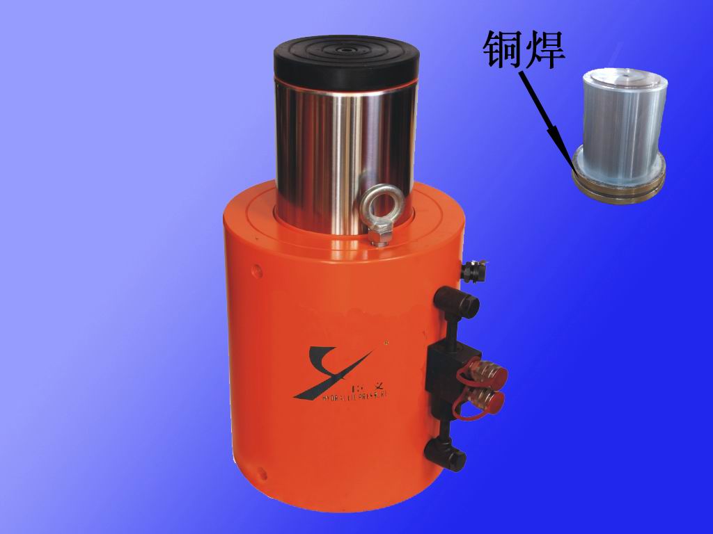 QF型分离式油压千斤顶(简称千斤顶)是我公司采用德国引进铜焊技术生产的双作用千斤顶。它具有输出力大并配有液压锁、安全阀。可实现多顶使用,(但液压锁需卸掉,换上快换接头)。维修简单,活塞杆表面镀硬铬(活塞头烧铜焊)。广泛应用于建筑、造船、冶金、采矿、石油化工、铁道等工程以及其它工业上。它除了能实现起升、顶推、扩张、挤压等基本作业,还能实现拉伸、夹紧、校正等功能。该型千斤顶除能垂直使用外,还可在任意方位使用。它具有劳动强度低、活塞升降变换灵活、外形小巧、重量轻等特点。