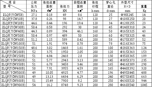 ZLQF(YCWxxxB)系列张拉千斤顶技术参数