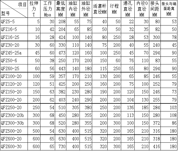 QFZ型张拉千斤顶(简称千斤顶)系根据国外OLM标准的先进技术结合我国实际情况而研制的产品。配以本厂生产的超高压电动油泵站或手动泵,完成千斤顶的张拉功能(亦可作顶升之用)。操作简便,维修保养容易。活塞杆表面镀硬铬(活塞头烧铜焊)。广泛应用于建筑、造船、冶金、采矿、石油化工、铁道等工程以及其它工业上。